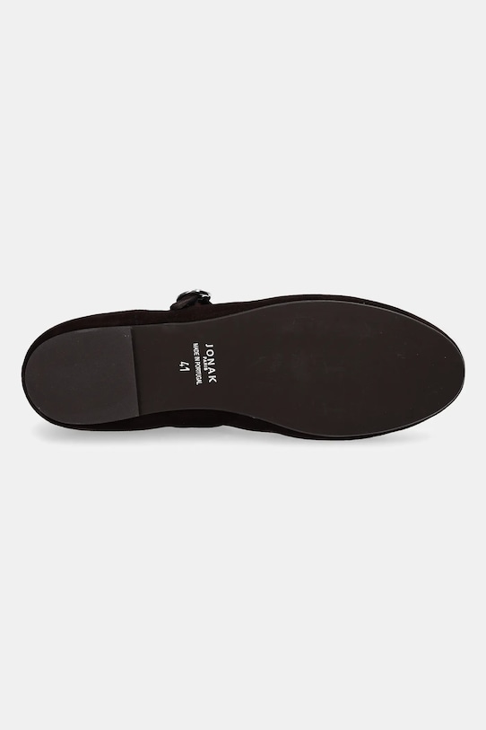 Балетки из коллекции Jonak, изготовленные из замши. Сделано в Португалии. - Круглый, мягкий нос. - Жесткий задник стабилизирует пятку и удерживает ногу в обуви, не давая ей выскальзывать во время движения. - Застежка-пряжка со штифтом для индивидуальной подгонки. - Модель с кожаной внутренней частью, комфортной для стопы, предотвращающей натирание, потертости и появление неприятного запаха. - Профилированная, мягкая стелька гарантирует комфорт использования. - Модель на плоской подошве. - Резиновая подошва прочная и устойчивая к повреждениям.
