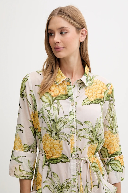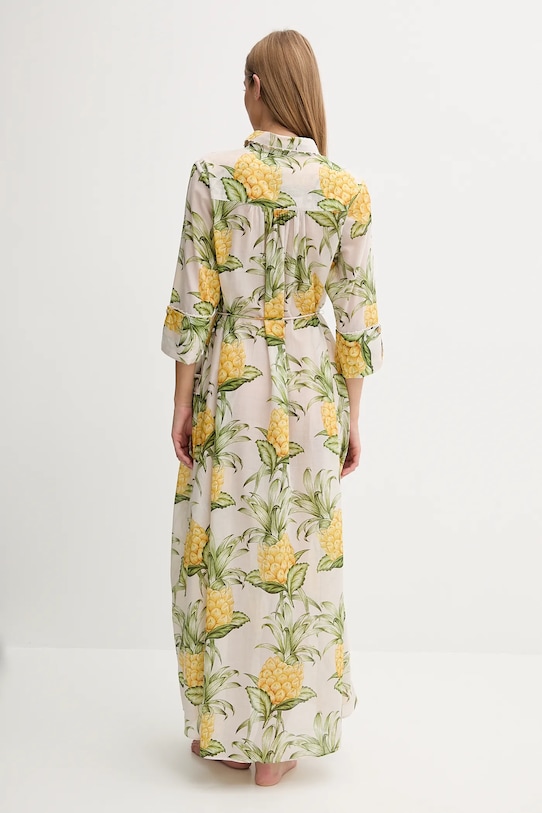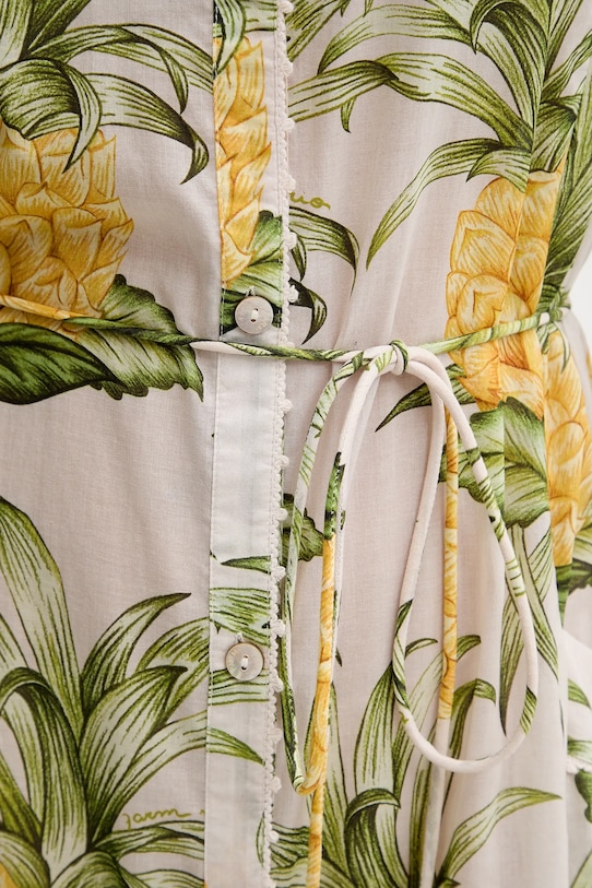 Пляжное платье из коллекции Farm Rio. Изготовлено из тонкой, неэластичной ткани. С 2019 года Farm Rio сотрудничает с One Tree Planted, а также с местными партнёрами в Бразилии, такими как SOS Mata Atlântica, IDESAM, Instituto Curicaca, Instituto Homem Pantaneiro и Iniciativa Verde. Цель проекта — восстановление экосистем в шести бразильских биомах: Амазонке, Атлантическом лесу, Каатинга, Серрадо, Пампе и Пантанале. - Свободный крой, обеспечивающий полную свободу движений. - Застежка на пуговицы. - Текстильный ремешок в комплекте. - Накладные карманы.
