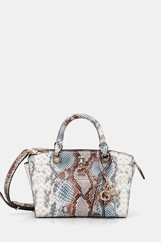 Небольшая сумочка из коллекции Guess. Модель на молнии, выполнена из экокожи. - В комплект модели входит брелок. - Застежка-молния. - Модель на подкладке. - Не подходит для формата А4. - Имеет внутренний карман на молнии и отделения для карт. - Сумка для ношения в руке или на плече. - Имеет ручки и съемный регулируемый ремень. - Количество слотов для карт: 3. - Минимальная длина ремешка: 107 см. - Максимальная длина ремня: 125 см. - Длина ручки: 23 см. - Глубина: 8 см. - Высота: 13 см. - Ширина у основания: 19 см.