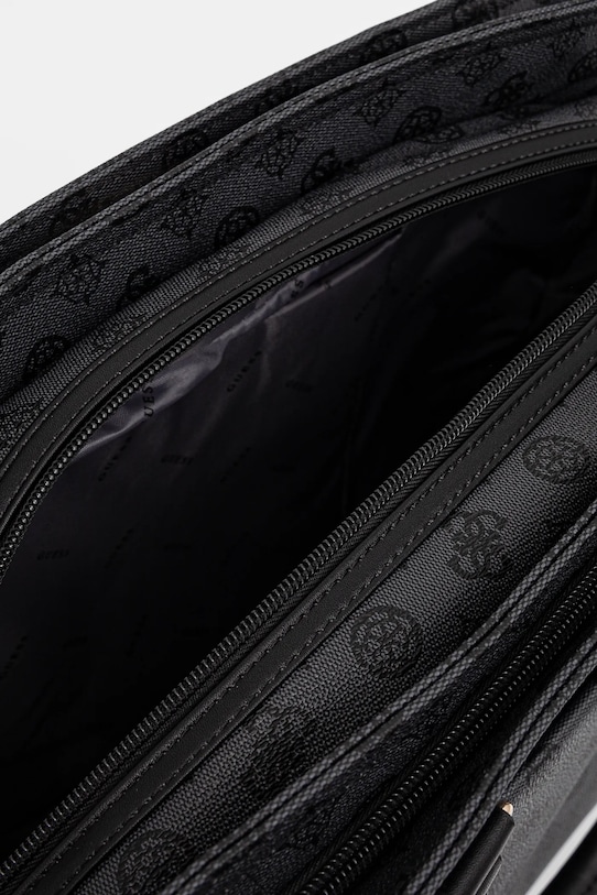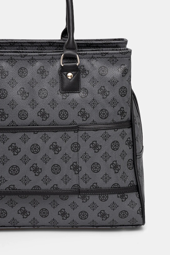 Сумка из коллекции Guess. Изготовлена из синтетического материала. - Имеет три отделения. - Застежка-молния. - Карман на молнии спереди позволяет безопасно хранить телефон и другие мелкие предметы. - Ремешок на задней панели позволяет прикрепить к ручке чемодана. - Отдельный карман для безопасного хранения ноутбука. - Внутренний карман на молнии. - Вмещает формат А4. - Короткие ручки для удобной переноски в руке. - Количество внутренних накладных карманов: 4. - Глубина: 18 см. - Высота: 33 см. - Ширина у основания: 45 см.