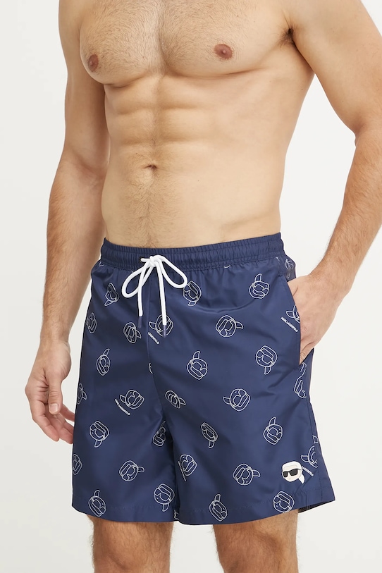 Плавки-шорты из коллекции Карла Лагерфельда из тонкой, неэластичной ткани. - Простой дизайн, не стесняющий движений. - Эластичный пояс со шнурками. - Накладные карманы. - Сетчатая внутренняя подкладка для дополнительного комфорта. - Карман на липучке на задней стороне позволяет легко хранить мелкие предметы.