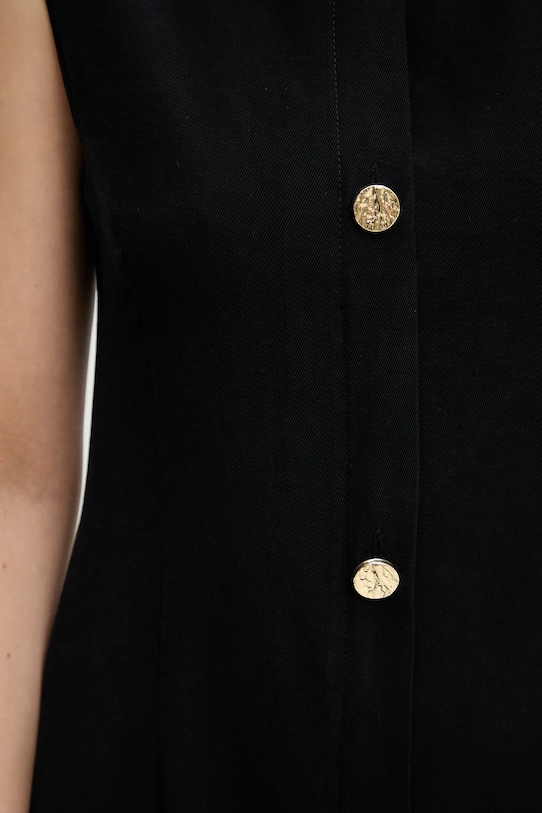 Это платье из коллекции Answear.LAB выполнено из гладкой ткани. Благодаря содержанию модала ткань мягкая на ощупь и имеет приятную фактуру. - Простой дизайн, не стесняющий движений. - Модель без подкладки. - Классический круглый вырез. - Нерегулируемые лямки не соскальзывают с плеч, обеспечивая комфорт во время занятий. - Потайная застежка-молния сзади. - Два боковых накладных кармана. - Имитация застежки на пуговицы. - Тонкая, неэластичная ткань. - Длина: 86 см. - Ширина под мышками: 42 см. - Размеры указаны для размера: S.