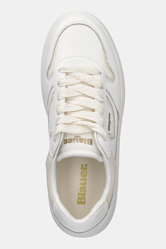 Эти кроссовки из коллекции Blauer изготовлены из комбинации натуральной и искусственной кожи. Их легко чистить и ухаживать за ними. - Круглый, слегка утолщенный носок. - Жесткий задник стабилизирует пятку и удерживает ногу в обуви, не давая ей выскальзывать во время движения. - Плоские шнурки устраняют давление на подъем стопы, обеспечивая хорошую посадку и комфорт. - Платформенная модель. - Съемная, легко моющаяся вставка. - Модель с текстильной подкладкой. - Резиновая подошва прочная и устойчивая к повреждениям. - Высота платформы: 5 см.