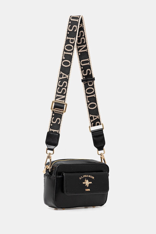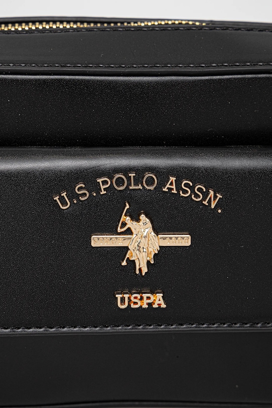 Небольшая сумочка из коллекции US Polo Assn. Эта модель на молнии изготовлена из искусственной кожи, которую легко чистить и ухаживать. В комплект входит тканевый мешочек. - Застежка-молния. - Съемный регулируемый ремешок. - Передний карман с магнитной застежкой. - Два внутренних кармана: один на кнопке, другой на молнии. - Узорчатая подкладка. - Входящий в комплект тканевый чехол защищает изделие от пыли. - Модель оснащена металлическими ножками, защищающими дно сумки. - Ширина у основания: 19 см. - Высота: 13 см. - Глубина: 7 см.