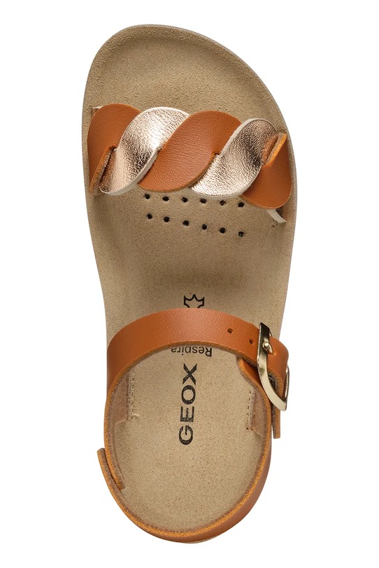Детские сандалии из коллекции Geox из синтетического материала. Лёгкие и удобные, идеально подходят для повседневной носки. - Geox Respira System: в них реализована технология Geox Respira, которая благодаря трехслойной подошве с дышащей системой перфорации улучшает вентиляцию, тем самым заботясь о здоровье ваших ног и обеспечивая комфорт при использовании обуви. - Кожаная стелька комфортна для стопы и предотвращает натирание, потертости и появление неприятного запаха. - Застежка-пряжка со штифтом. - Резиновая подошва прочная и устойчивая к повреждениям.