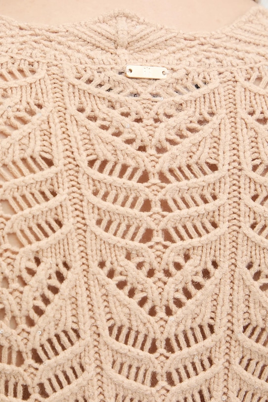 Кардиган из коллекции Fracomina из плотной трикотажной ткани. - Свободный крой, обеспечивающий полную свободу движений. - Привлекающее внимание плетение. - Модель с декоративной аппликацией из пайеток. - Длина: 53 см. - Ширина под мышками: 48 см. - Длина рукава: 58 см. - Указаны размеры: XS/S.
