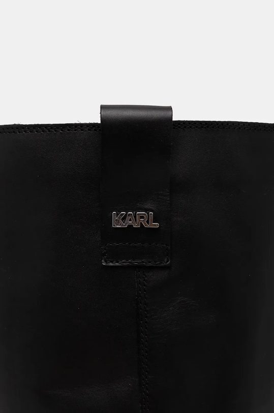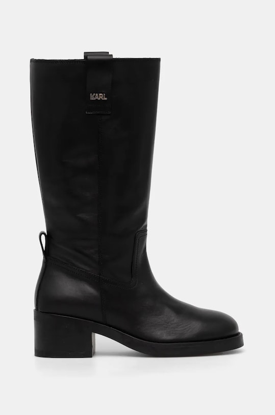 Эти ботинки из коллекции Karl Lagerfeld изготовлены из натуральной кожи. Они оснащены кожаной стелькой, которая обеспечивает комфорт и предотвращает натирание, потертости и появление неприятного запаха. - Круглый, жёсткий носок. - Усиленный задник обеспечивает отличную поддержку лодыжки и пятки. - Кожаный салон. - Модель с устойчивым каблуком. - Резиновая подошва прочная и устойчивая к повреждениям. - Верхняя окружность: 40 см. - Высота вала: 30 см. - Высота каблука: 5 см. - Длина вставки: 24 см. - Размеры указаны для размера: 37.