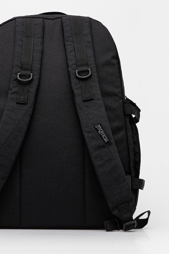 Рюкзак из коллекции Jansport. Изготовлен из текстильного материала. - Изделие содержит переработанные волокнистые материалы. - Короткая ручка для удобной переноски в руке. - Регулируемые ремни позволяют индивидуально подгонять их длину под пользователя. - Передние карманы на молнии. - Боковые карманы для бутылок. - Имеет отделение для ноутбука или планшета. - Внутренний сетчатый карман. - Отделение на молнии. - Вмещает формат А4. - Модель на подкладке. - Ширина у основания: 30 см. - Высота: 43 см. - Глубина: 9 см.
