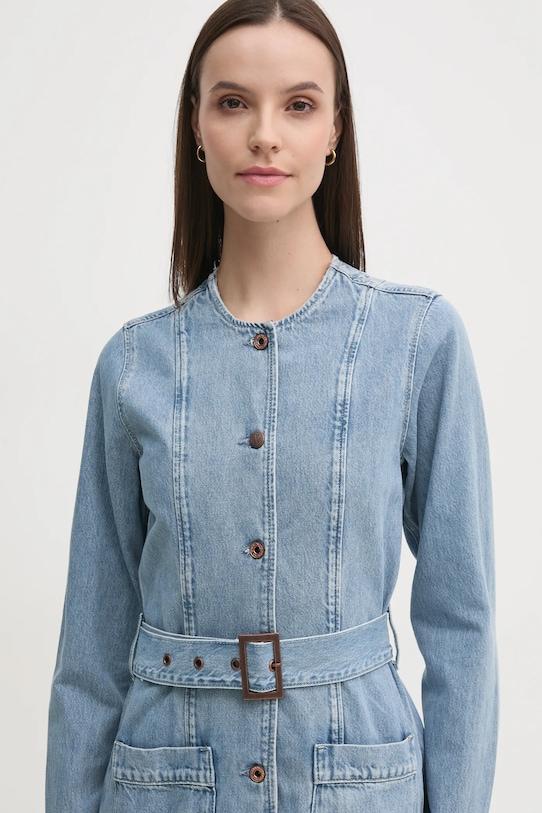 Это платье из коллекции Pepe Jeans выполнено из денима. Модель выполнена из исключительно комфортной хлопковой ткани. - Модель из линейки Pepe Future, в которую входят изделия, изготовленные в ходе экологически устойчивого производства. - Простой дизайн, не стесняющий движений. - Застежка на пуговицы. - Рукава с манжетами на пуговицах. - Два накладных кармана спереди. - Текстильный ремешок в комплекте. - Длина рукава: 60 см. - Ширина под мышками: 45 см. - Ширина талии: 38 см. - Длина: 115 см. - Размеры указаны для размера: S.
