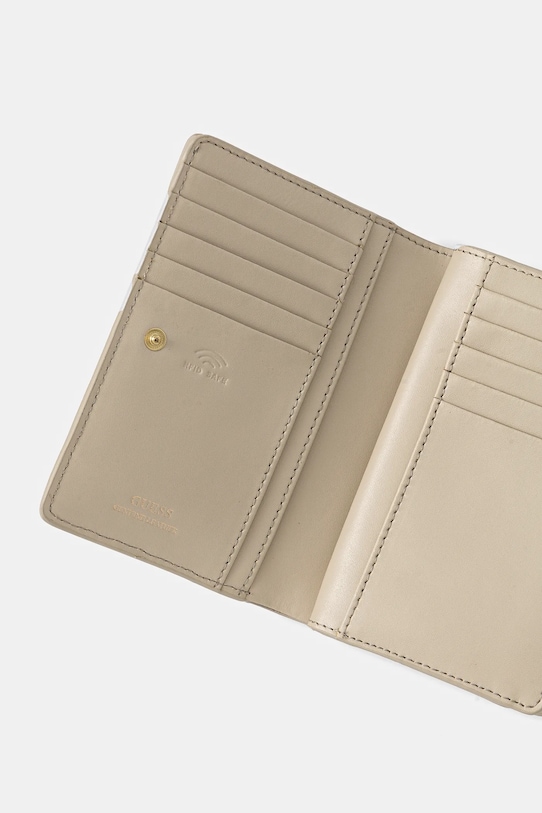 Кошелек среднего размера из коллекции Guess. Изготовлен из натуральной кожи. - Использование соответствующих материалов обеспечивает защиту от технологии RFID, которая использует радиоволны для удалённого считывания данных. Это гарантирует безопасность информации, хранящейся на транспортируемых носителях, таких как банковские карты или паспорта. - Застежка-кнопка. - Отделения для карт. - Отделение для купюр. - Карман для монет на молнии. - Модель упакована в фирменную коробку. - Количество слотов для карт: 10. - Размеры: 10 х 14 см.