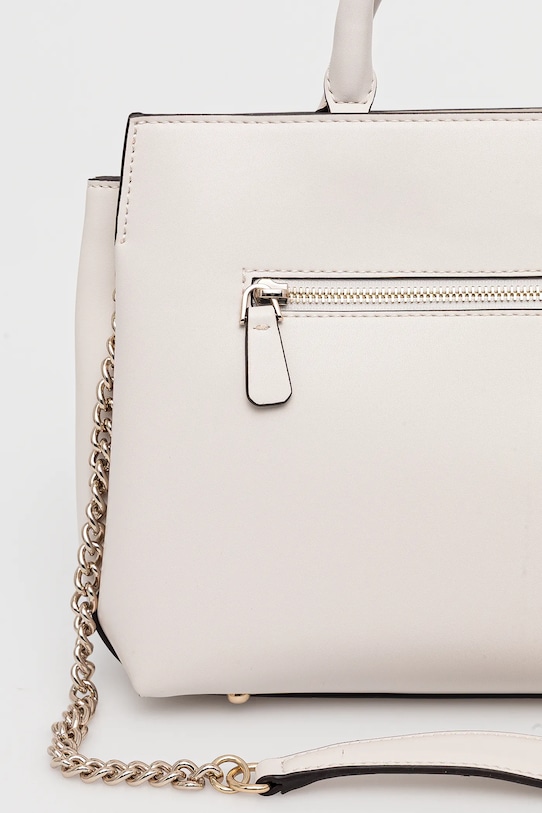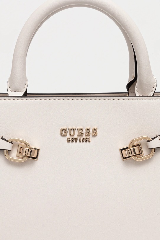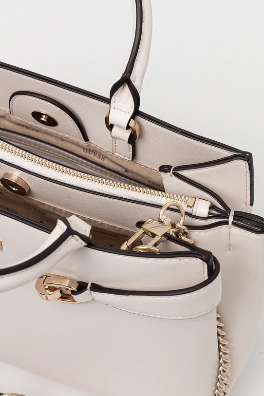 Сумка среднего размера из коллекции Guess. Модель с застёжкой-крючком выполнена из синтетического материала. - Имеет три отделения, одно из которых застегивается на молнию. - Три внутренних кармана: один на молнии, два накладных. - Имеет ручки и съемный нерегулируемый ремень. - Не подходит для формата А4. - Входящий в комплект тканевый чехол защищает изделие от пыли. - Карман на молнии на задней стороне позволяет безопасно хранить телефон или другие мелкие предметы. - Глубина: 11 см. - Высота: 23 см. - Ширина у основания: 28 см.