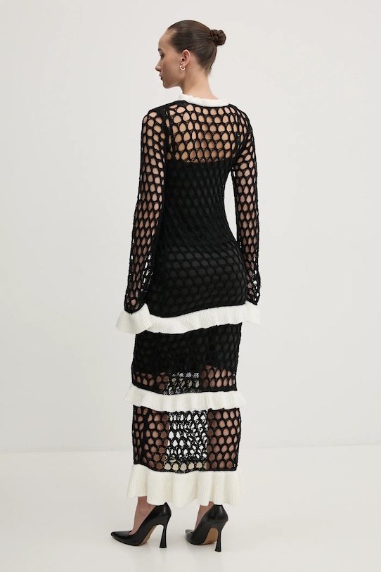 Это платье из коллекции Never Fully Dressed выполнено из ажурного трикотажа. Модель выполнена из исключительно комфортного, дышащего хлопкового материала. - Приталенный крой, подчеркивающий силуэт. - В комплект модели входит нижняя юбка. - Классический круглый вырез. - Длинный рукав. - Модель с декоративными оборками. - Тонкий, эластичный трикотаж. - Модель без застежки. - Длина рукава: 75 см. - Длина: 148 см. - Ширина под мышками: 30 см. - Ширина талии: 38 см. - Ширина бедер: 40 см. - Размеры указаны для размера: S.