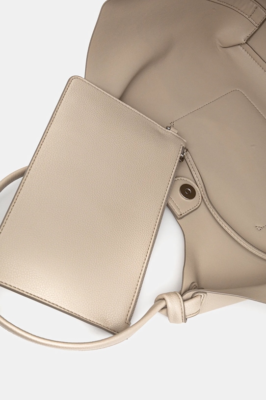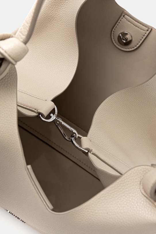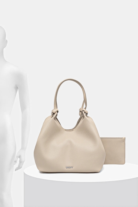 Сумка-шоппер среднего размера из коллекции Dkny. Изготовлена из искусственной кожи, с застёжкой. - Магнитная застежка. - Внутренних карманов нет. - Накладной карман на задней стороне позволяет легко и безопасно хранить телефон или другие мелкие предметы. - Входящий в комплект мешочек позволит вам хранить необходимые предметы. - Модель без подкладки. - Не подходит для формата А4. - Длинные ручки для удобной переноски в руке или на плече. - Длина ручки: 46 см. - Глубина: 13 см. - Высота: 23 см. - Ширина у основания: 27 см.