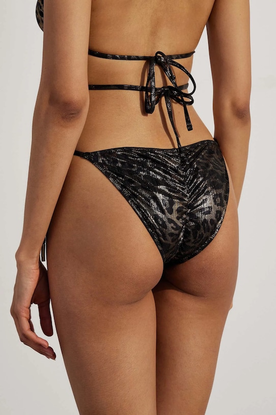 Раздельный купальник из коллекции Medicine. Изготовлен из ткани с узором. - В комплект входят плавки стандартной длины и бюстгальтер с чашечками на легкой подкладке. - Классический треугольный верх. - Чашка со съемными вкладышами. - Бюстгальтер можно завязывать несколькими способами. - Модель с регулируемой шнуровкой. - Низ с завязками по бокам позволяет индивидуально подогнать по фигуре. - Декоративные оборки. - Декоративные детали. - Дополнительный слой материала в виде подкладки. - Узорчатый материал. - Леопардовый узор.