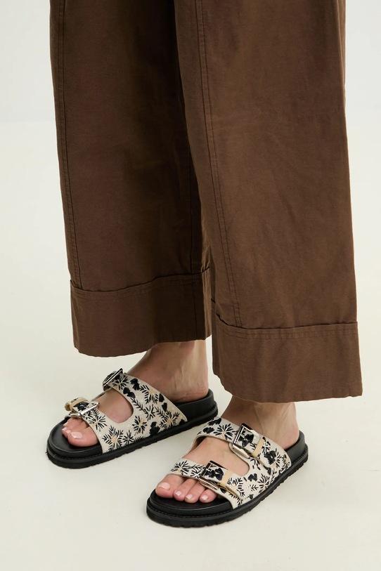 Эти шлёпанцы из коллекции Answear.LAB изготовлены из текстиля. Они оснащены кожаной стелькой, которая обеспечивает комфорт и предотвращает натирание, потёртости и появление неприятного запаха. - Регулируемые ремешки обеспечивают оптимальную посадку по ноге. - Кожаная стелька комфортна для стопы и предотвращает натирание, потертости и появление неприятного запаха. - Подошва из пеноматериала обеспечивает более мягкое ощущение и дополнительную амортизацию. - Модель на плоской подошве. - Длина вставки: 24 см. - Размеры указаны для размера: 39.