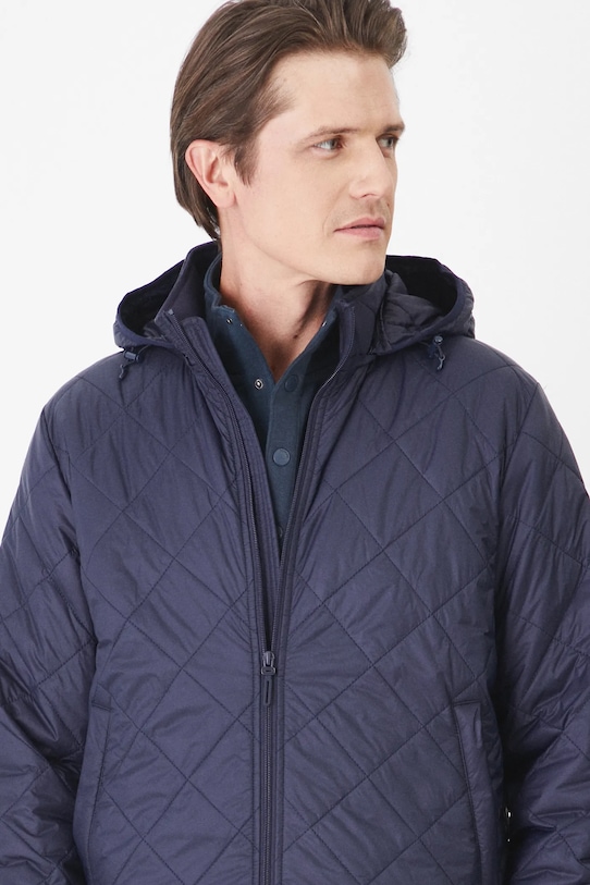 Куртка-бомбер из коллекции Medicine. Эта куртка с лёгким утеплением выполнена из стёганого материала. - Простой дизайн. - Длинный рукав. - Застежка-молния. - Поднятый воротник. - Съемный капюшон со шнурками. - Внешние накладные карманы. - Внутренний карман с застежкой на липучке. - Рукава и нижний край отделаны ребристыми манжетами. - Легкоутепленная модель с подкладкой. - Стеганая модель. - Длина рукава: 68 см. - Ширина груди: 62,5 см. - Ширина плеч: 48 см. - Длина: 72 см. - Размеры указаны для размера: L.