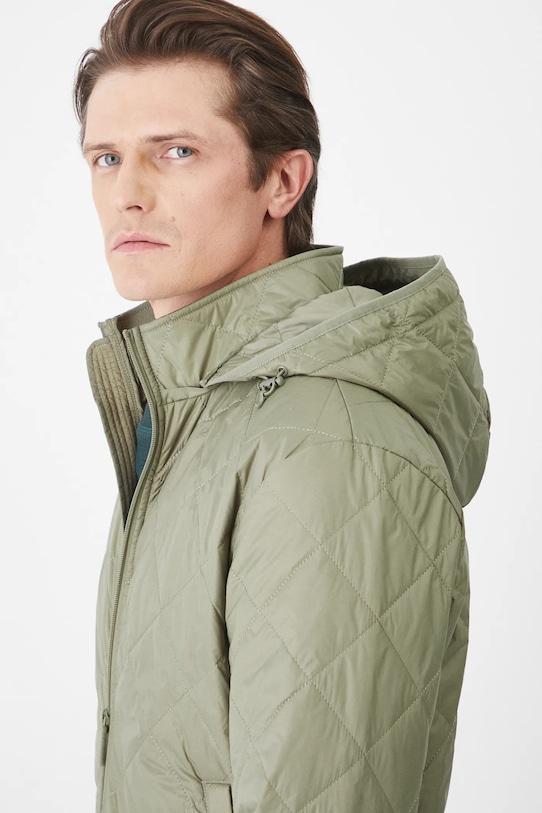 Куртка-бомбер из коллекции Medicine. Эта куртка с лёгким утеплением выполнена из стёганого материала. - Простой дизайн. - Длинный рукав. - Застежка-молния. - Поднятый воротник. - Съемный капюшон со шнурками. - Внешние накладные карманы. - Внутренний карман с застежкой на липучке. - Рукава и нижний край отделаны ребристыми манжетами. - Легкоутепленная модель с подкладкой. - Стеганая модель. - Длина рукава: 68 см. - Ширина груди: 62,5 см. - Ширина плеч: 48 см. - Длина: 72 см. - Размеры указаны для размера: L.