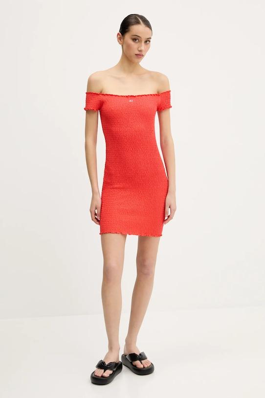 Это платье из коллекции Tommy Jeans выполнено из тонкой, эластичной ткани. Модель выполнена из дышащего материала с высоким содержанием хлопка. - Эта модель содержит регенерированные хлопковые волокна. Новые волокна и пряжа производятся из старых текстильных отходов и используются для производства новой одежды. - Модель мини-длины. - Приталенный крой, подчеркивающий силуэт. - Модель изготовлена из гибкого материала. - Короткий рукав. - Испанский вырез. - Длина: 67 см. - Ширина под мышками: 32 см. - Размеры указаны для размера: S.