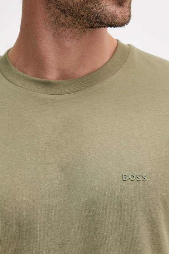 Лёгкая футболка из коллекции BOSS, выполненная из тонкой эластичной ткани. Изготовлена из дышащего хлопка. - Концепция «Хлопок, сделанный в Африке» ориентирована на получение хлопка из ответственных источников, которые заботятся о качестве и условиях жизни африканских фермеров и уделяют особое внимание защите окружающей среды. - Простой дизайн, не стесняющий движений. - Короткий рукав. - Классический круглый вырез. - Графический логотип бренда спереди. - Длина: 73 см. - Ширина под мышками: 52 см. - Размеры указаны для размера: M.