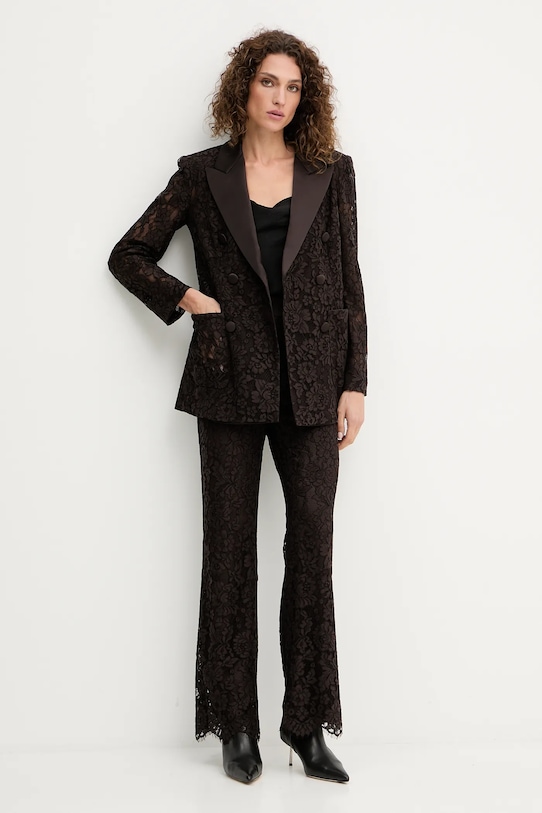Брюки из коллекции Luisa Spagnoli из кружевного материала. - Застежка на молнию и крючок. - Два накладных кармана спереди. - Модель на подкладке. - Ширина талии: 40 см. - Ширина бедер: 47 см. - Высота талии: 31 см. - Длина по внутреннему шву: 81 см. - Размеры указаны для размера: 36.