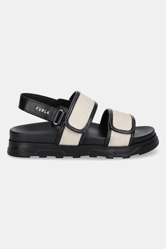 Сандалии из коллекции Furla, изготовленные из комбинации текстиля и натуральной кожи, легкие и удобные, идеально подходят для повседневной носки. - Регулируемая застежка позволяет индивидуально подогнать посадку. - Платформенная модель. - Анатомическая стелька поддерживает свод стопы и обеспечивает длительный комфорт. - Конструкция XL Extralight представляет собой сочетание чрезвычайно легкой, прочной, гибкой и амортизирующей подошвы с мягкой стелькой. - Входящий в комплект тканевый чехол защищает изделие от пыли. - Высота платформы: 4 см.