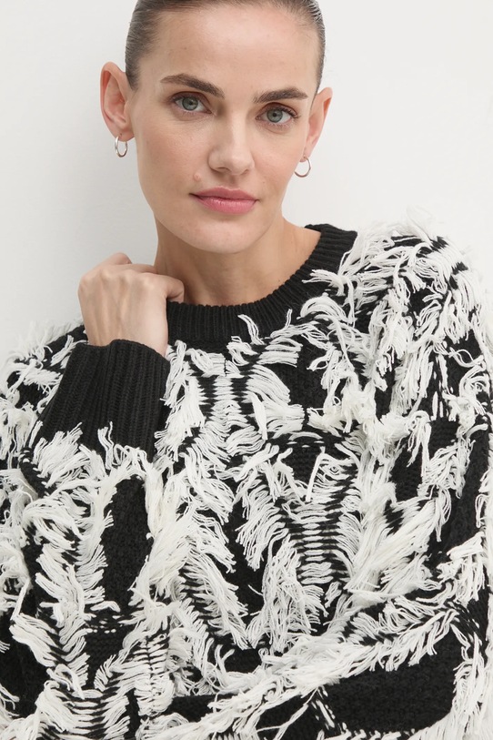 Этот свитер из коллекции OUI выполнен из узорчатого трикотажа. Высокие терморегулирующие свойства шерсти позволяют согреться в холод и охладиться в жару. - Свободный крой, обеспечивающий полную свободу движений. - Крой рукава со спущенной линией плеча не ограничивает подвижность. - Классический круглый вырез. - Рукава и низ изделия отделаны удобными эластичными манжетами. - Плотная, эластичная трикотажная ткань. - Длина рукава (от горловины): 73 см. - Длина: 65 см. - Ширина под мышками: 65 см. - Размеры указаны для размера: 36.