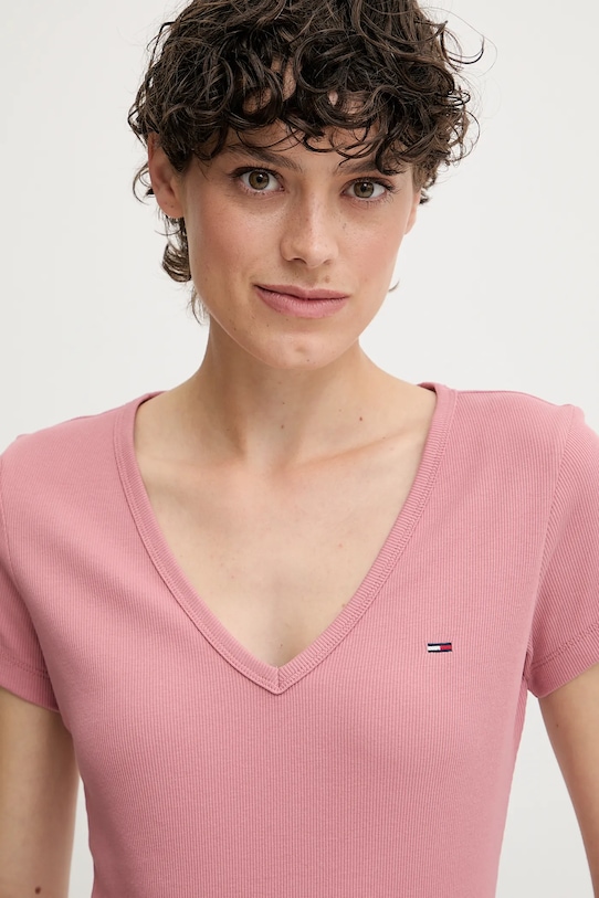 Эта лёгкая футболка из коллекции Tommy Jeans выполнена из трикотажа в рубчик. Высокоэластичный материал обеспечивает полную свободу движений. - Экологически чистый переработанный хлопок снижает воздействие на окружающую среду за счет сокращения использования химикатов и экономии воды и энергии, улучшая условия жизни и экономическое развитие в регионах производства хлопка. - Приталенный крой, подчеркивающий силуэт. - Острый ребристый вырез. - Короткий рукав. - Длина: 56 см. - Ширина под мышками: 41 см. - Размеры указаны для размера: S.