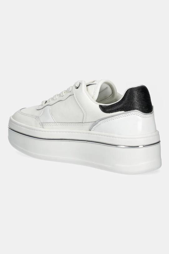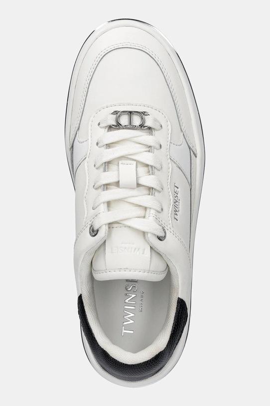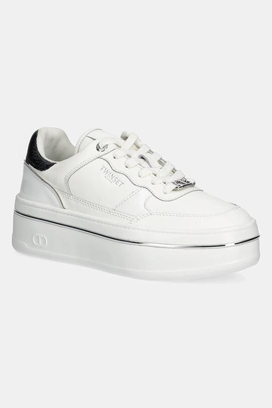 Кроссовки из коллекции Twinset, выполненные из комбинации натуральной кожи и синтетического материала. - Круглый, сильно заостренный нос. - Усиленный задник с мягким наполнителем защищает пятку от истирания. - Плоские шнурки устраняют давление на подъем стопы, обеспечивая хорошую посадку и комфорт. - Резиновая подошва прочная и устойчивая к повреждениям. - Платформенная модель. - Входящий в комплект тканевый чехол защищает изделие от пыли. - Высота платформы: 5 см. - Длина вставки: 23 см. - Размеры указаны для размера: 37.