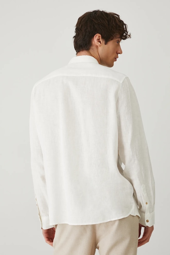 Эта рубашка из коллекции Medicine. Она сшита из льна и имеет воротник на пуговицах. - Натуральный, воздушный и прочный материал, изготовлен из 100% льна. - Рубашка прямого кроя мягко облегает фигуру, но не подчеркивает ее, обеспечивая свободу движений. - Длинный рукав. - Манжеты на пуговицах. - Воротник на пуговицах. - Застежка на пуговицы. - Гладкая ткань. - Окружность воротника: 44,5 см. - Длина рукава: 68 см. - Длина: 77,6 см. - Ширина груди: 58,5 см. - Ширина плеч: 47,5 см. - Размеры указаны для размера: L.