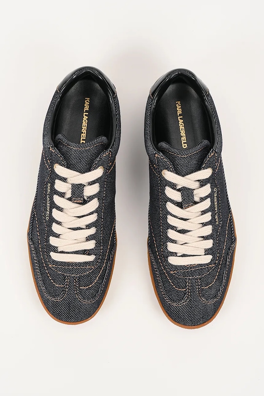 Кроссовки из коллекции Karl Lagerfeld. Изготовлены из комбинации текстиля и натуральной кожи. - Круглый, жёсткий носок. - Усиленный задник с мягким наполнителем защищает пятку от истирания. - Плоские шнурки устраняют давление на подъем стопы, обеспечивая хорошую посадку и комфорт. - Внутренняя часть выполнена из биовег-материала Musika, который является экологичной альтернативой натуральной коже и содержит сырье биологического происхождения. - Резиновая подошва прочная и устойчивая к повреждениям. - Верхняя часть прошита в тон цвета.