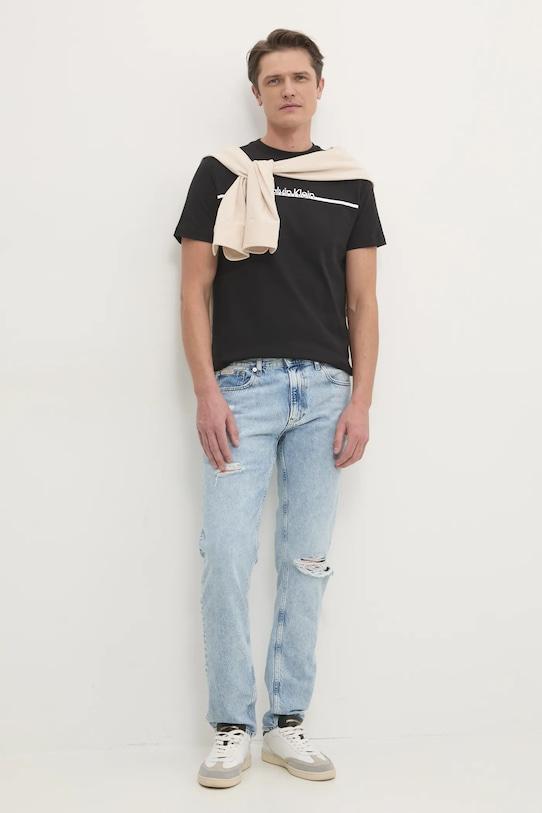Узкие джинсы прямого кроя из коллекции Calvin Klein Jeans с обычной талией. Изготовлены из денима с декоративной потертостью. - Этот продукт частично изготовлен из переработанного хлопка. - Модель со стандартной талией, застежкой на пуговицы и молнию. - Три накладных кармана спереди. - Два накладных кармана на ягодицах. - Ширина талии: 40 см. - Ширина бедер: 50 см. - Высота талии: 27 см. - Ширина штанины: 24 см. - Ширина штанины внизу: 18 см. - Длина внешней части штанины: 106 см. - Размеры указаны для размера: 31/32.