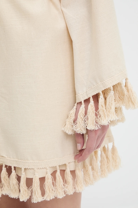 Этот комплект из коллекции Answear.LAB. Изготовлен из тонкой, неэластичной ткани. Изготовлен из дышащего вискозного материала. - В комплект входят плащ и шорты. - Свободный крой, обеспечивающий полную свободу движений. - Модель с декоративной бахромой. - Текстильный ремешок в комплекте. - Накладные карманы. - Ширина талии: 32 см. - Ширина бедер: 47 см. - Высота талии: 30 см. - Ширина штанины внизу: 28 см. - Длина штанины: 40 см. - Длина: 80 см. - Ширина под мышками: 50 см. - Размеры указаны для размера: S.