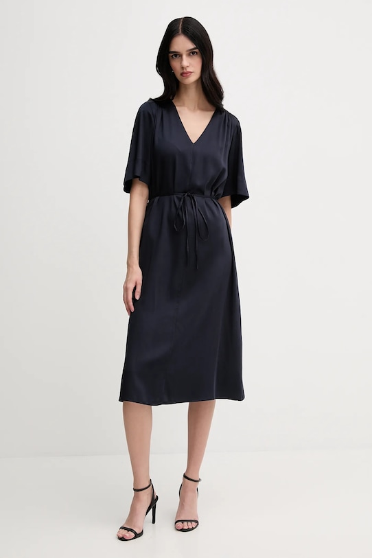 Это платье из коллекции Gant выполнено из тонкой, неэластичной ткани. Модель выполнена из исключительно комфортного материала с высоким содержанием вискозы. - Частично изготовлен из лиоцелла — экологичного и нетоксичного материала. Этот материал мягкий и дышащий, идеально подходит для чувствительной кожи, склонной к раздражению. - Расклешенный крой. - Острый вырез. - Короткий рукав. - Крой рукава со спущенной линией плеча не ограничивает подвижность. - Длина: 110 см. - Ширина под мышками: 50 см. - Размеры указаны для размера: 36.