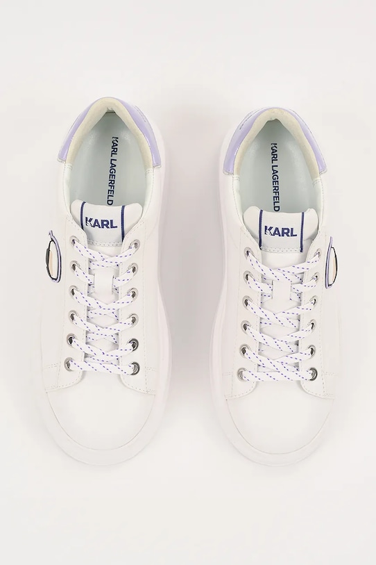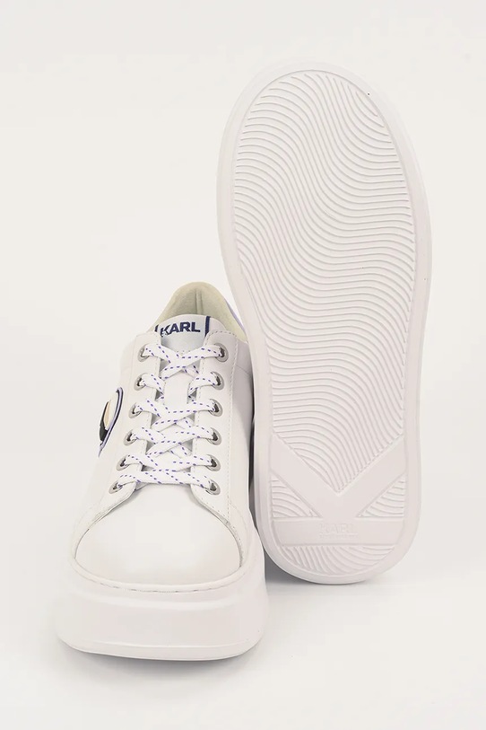 Кроссовки из коллекции Karl Lagerfeld. Эти лёгкие и удобные кроссовки из натуральной кожи идеально подойдут для повседневной носки. - Круглый, слегка утолщенный носок. - Жесткий задник стабилизирует пятку и удерживает ногу в обуви, не давая ей выскальзывать во время движения. - Плоские шнурки устраняют давление на подъем стопы, обеспечивая хорошую посадку и комфорт. - Съемная, легко моющаяся вставка. - Подошва из пеноматериала обеспечивает более мягкое ощущение и дополнительную амортизацию. - Платформенная модель. - 3D логотип.