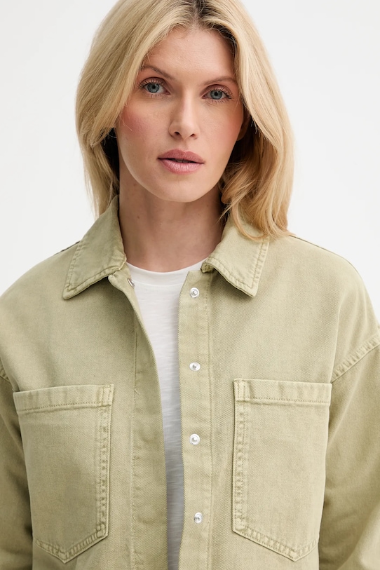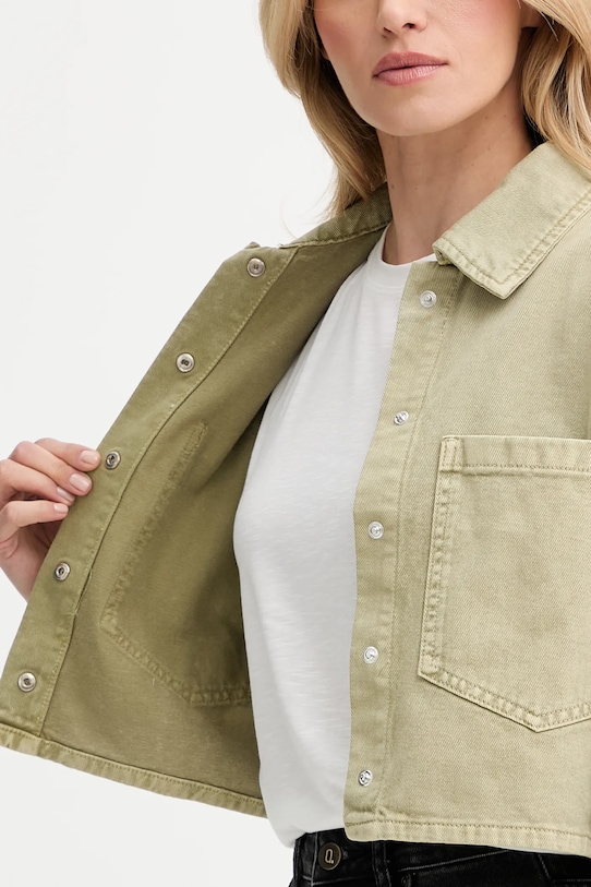 Куртка из коллекции Answear.LAB. Эта модель без подкладки выполнена из денима. Джинсовая ткань плотная, хорошо держит форму. - Свободный крой, обеспечивающий полную свободу движений. - Удобная застежка-кнопка позволяет легко надевать и снимать. - Модель с воротником. - Крой рукава со спущенной линией плеча не ограничивает подвижность. - Рукава с манжетами на пуговицах. - Два накладных кармана на груди. - Неутепленная модель без подкладки. - Длина: 46 см. - Ширина под мышками: 51 см. - Размеры указаны для размера: S.