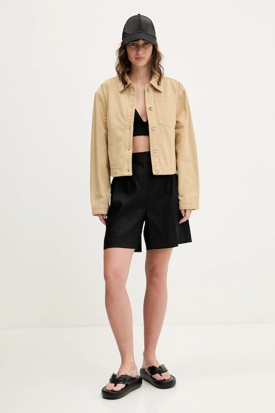 Шорты из коллекции HUGO изготовлены из тонкой, неэластичной ткани. Высокие терморегулирующие свойства шерсти позволяют согреться в холодную погоду и охладиться в жаркую. - Модель с высокой талией, застежкой на молнию, пуговицы и крючок. - Два накладных кармана спереди. - Имитация карманов на ягодицах. - Штанина отутюживается в складку. - Ширина талии: 37 см. - Ширина бедер: 46 см. - Высота талии: 34 см. - Ширина штанины внизу: 32 см. - Ширина штанины: 34 см. - Длина штанины: 46 см. - Размеры указаны для размера: 36.