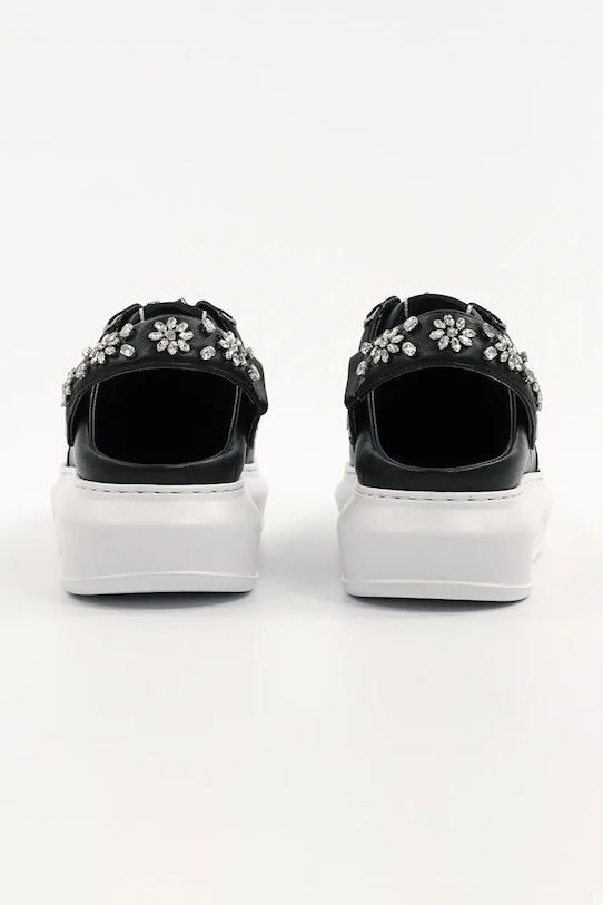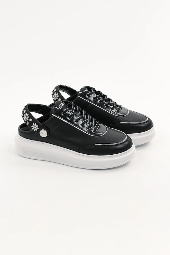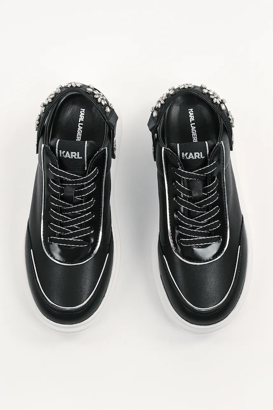 Кроссовки из коллекции Karl Lagerfeld. Эти лёгкие и удобные кроссовки из натуральной кожи идеально подойдут для повседневной носки. - Круглый, жёсткий носок. - Внутренняя часть выполнена из биовег-материала Musika, который является экологичной альтернативой натуральной коже и содержит сырье биологического происхождения. - Удобная стелька. - Классическая шнуровка позволяет индивидуально подогнать обувь по ноге. - Аппликация из блестящих стразов. - Подошва из пеноматериала обеспечивает более мягкое ощущение и дополнительную амортизацию.