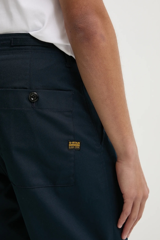 Эти брюки из коллекции G-Star изготовлены из гладкой ткани. Изделие содержит переработанные волокна. - Изделие содержит органический хлопок и переработанные полиэфирные волокна. - Слегка зауженная ножка. - Застежка на пуговицы и молнию. - Два боковых накладных кармана. - Два кармана на пуговицах на ягодицах. - Ширина талии: 41 см. - Ширина бедер: 53 см. - Высота талии: 35 см. - Ширина штанины: 30 см. - Ширина штанины внизу: 18 см. - Длина внешней части штанины: 101 см. - Размеры указаны для размера: 31/32.