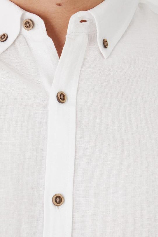 Эта рубашка из коллекции Medicine. Она сшита из смеси льна и хлопка. Воротник застёгивается на пуговицы. - Рубашка прямого кроя мягко облегает фигуру, но не подчеркивает ее, обеспечивая свободу движений. - Короткий рукав. - Воротник на пуговицах. - Застежка на пуговицы. - Ткань с неровной текстурой. - Гладкая ткань. - Льняной материал обеспечивает комфорт и воздухопроницаемость. - Окружность воротника: 43,5 см. - Длина: 77,5 см. - Ширина груди: 58,5 см. - Ширина плеч: 47,5 см. - Размеры указаны для размера: L.