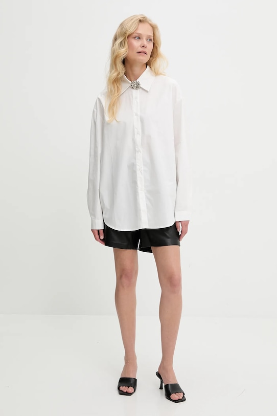 Эта рубашка Answear.LAB сшита из тонкой, неэластичной ткани. В комплекте три броши. - Свободный крой, обеспечивающий полную свободу движений. - Длинный рукав. - Крой рукава со спущенной линией плеча не ограничивает подвижность. - Рукава с манжетами на пуговицах. - Модель с воротником. - Удобная застежка на кнопки позволяет легко надевать и снимать. - Более длинная спина. - Длина рукава (от воротника): 78 см. - Длина спереди: 73 см. - Длина спинки: 78 см. - Ширина под мышками: 65 см. - Указаны размеры: S/M.
