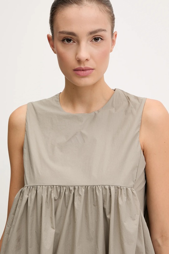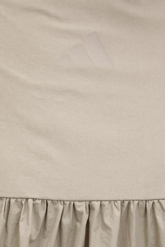 Это платье Adidas изготовлено из тонкой, неэластичной ткани. В состав входят переработанные волокна. - Модель содержит переработанные полиэфирные и полиамидные волокна. - Расклешенный крой. - Модель с сетчатой подкладкой. - Классический круглый вырез. - Нерегулируемые лямки не соскальзывают с плеч, обеспечивая комфорт во время занятий. - Застежка-молния сзади. - Модель с декоративными оборками. - Графический логотип бренда спереди. - Длина: 112 см. - Ширина под мышками: 48 см. - Размеры указаны для размера: S.
