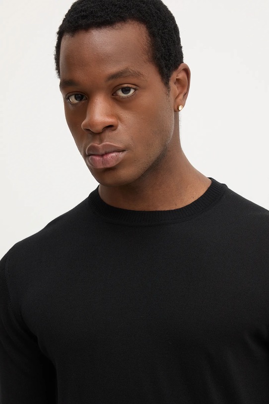 Этот свитер из коллекции Emporio Armani имеет круглый вырез и выполнен из тонкого трикотажного полотна. - Простой дизайн. - Рукава отделаны ребристыми манжетами. - Круглый вырез. - Длина рукава: 68 см. - Длина: 69 см. - Ширина под мышками: 52 см. - Размеры указаны для размера: M.