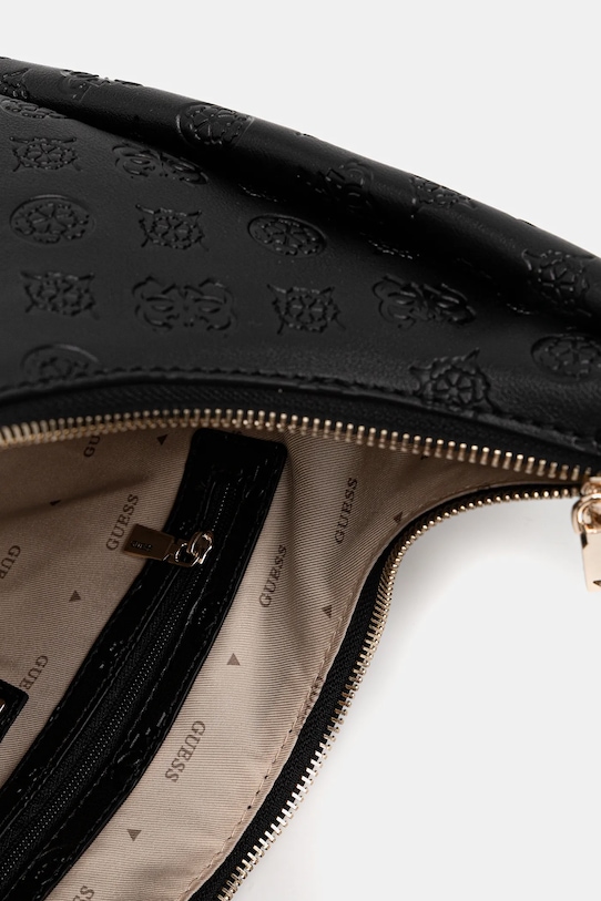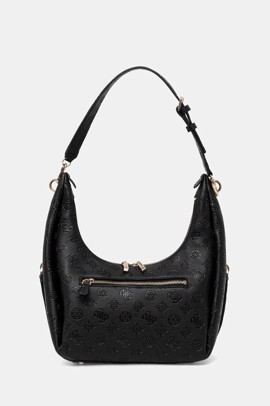 Сумка среднего размера из коллекции Guess. Модель на молнии, выполнена из экокожи. - Застежка-молния. - Модель на подкладке. - Не подходит для формата А4. - Модель оснащена металлическими ножками, защищающими дно сумки. - Входящий в комплект тканевый чехол защищает изделие от пыли. - Съемный регулируемый ремешок. - Имеет внутренние карманы, в том числе один на молнии. - Минимальная длина ремешка: 48 см. - Максимальная длина ремешка: 54 см. - Глубина: 11 см. - Высота: 18/30 см. - Ширина у основания: 25 см.