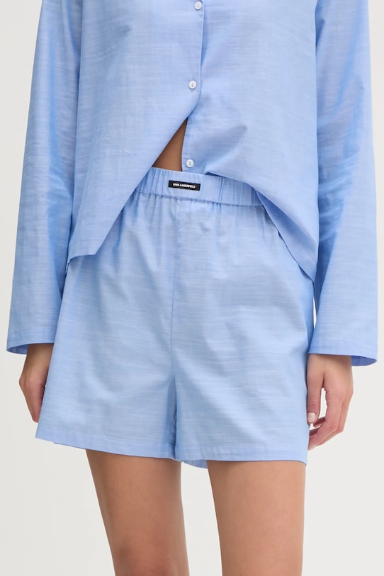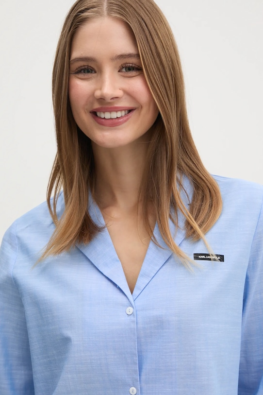 Пижама из коллекции Karl Lagerfeld. Модель выполнена из гладкого, исключительно комфортного хлопкового материала. - Пижама включает в себя рубашку и шорты. - Удобная застежка на кнопки позволяет легко надевать и снимать. - Тонкая, неэластичная ткань. - Модель с воротником. - Эластичный пояс.