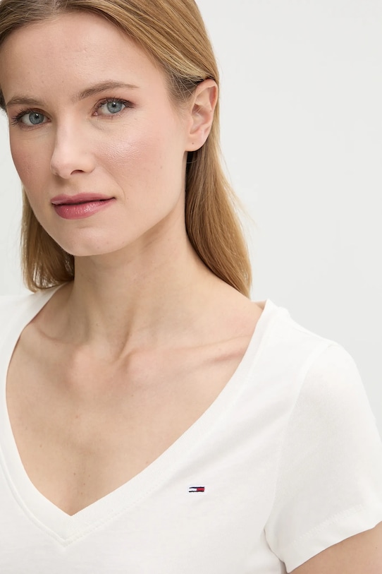 Эта футболка из коллекции Tommy Jeans выполнена из тонкой, эластичной ткани. Модель выполнена из исключительно комфортного, дышащего хлопкового материала. - Эта модель содержит регенерированные хлопковые волокна. Новые волокна и пряжа производятся из старых текстильных отходов и используются для производства новой одежды. - Приталенный крой, подчеркивающий силуэт. - Декоративный, заостренный вырез. - Короткий рукав. - Логотип бренда вышит спереди. - Длина: 58 см. - Ширина под мышками: 42 см. - Размеры указаны для размера: S.