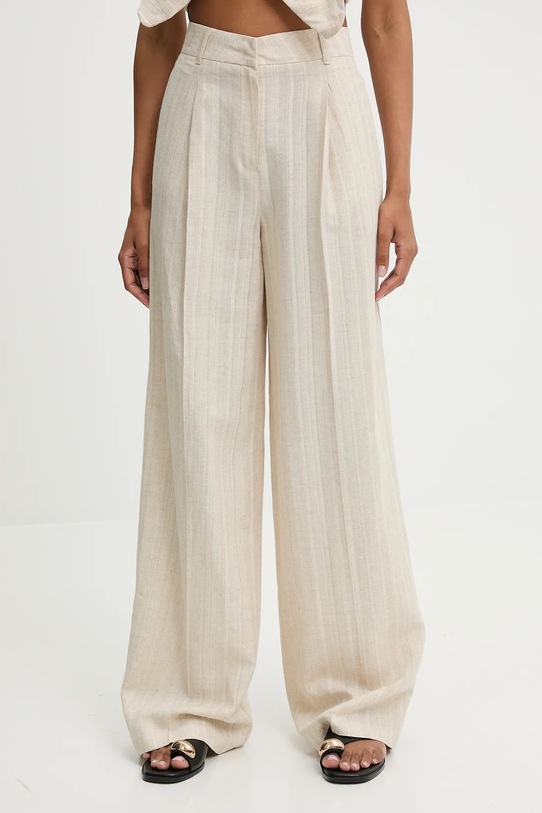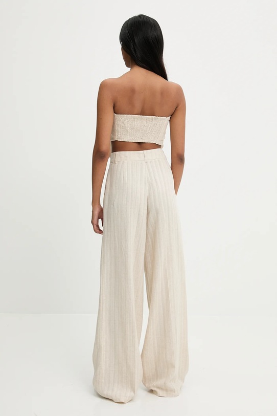 Этот комплект из коллекции Answear.LAB выполнен из тонкой, неэластичной ткани. Доступен эксклюзивно на Answear.com. - Приталенный верх и свободный низ. - Верхний край изнутри обработан силиконом. - Модель с переплетом. - Застежка на молнию и крючок. - Два боковых накладных кармана. - Штанина отутюживается в складку. - Ширина талии: 33 см. - Ширина бедер: 46 см. - Высота талии: 32 см. - Ширина штанины внизу: 30 см. - Ширина штанины: 32 см. - Длина внешнего шва: 114 см. - Размеры указаны для размера: S.