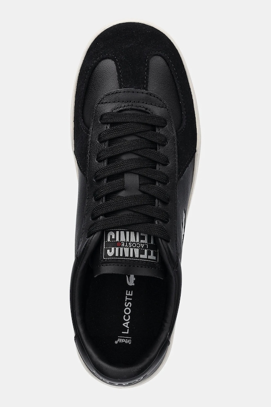 Кроссовки из коллекции Lacoste. Изготовлены из комбинации натуральной кожи и замши. - OrthoLite — это стелька специальной формы, обеспечивающая комфорт и амортизацию при ходьбе. Пена антибактериальна и обеспечивает правильный отвод влаги, предотвращая потливость ног. - Круглый нос. - Жесткий задник стабилизирует пятку и удерживает ногу в обуви, не давая ей выскальзывать во время движения. - Уютный салон. - Резиновая подошва прочная и устойчивая к повреждениям. - Классическая шнуровка позволяет индивидуально подогнать обувь по ноге.