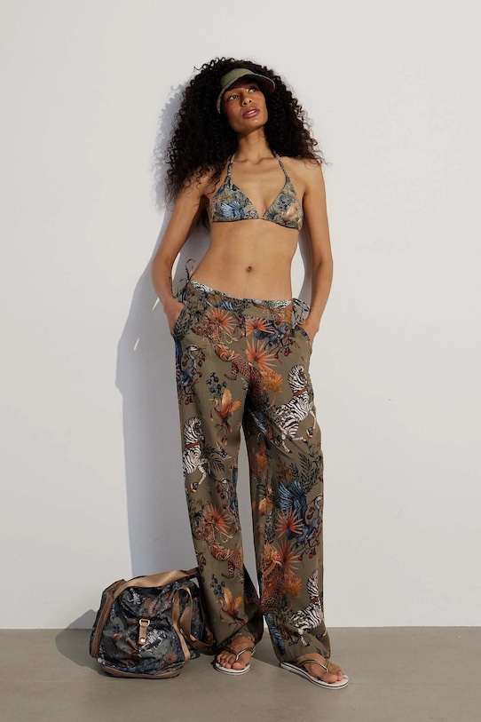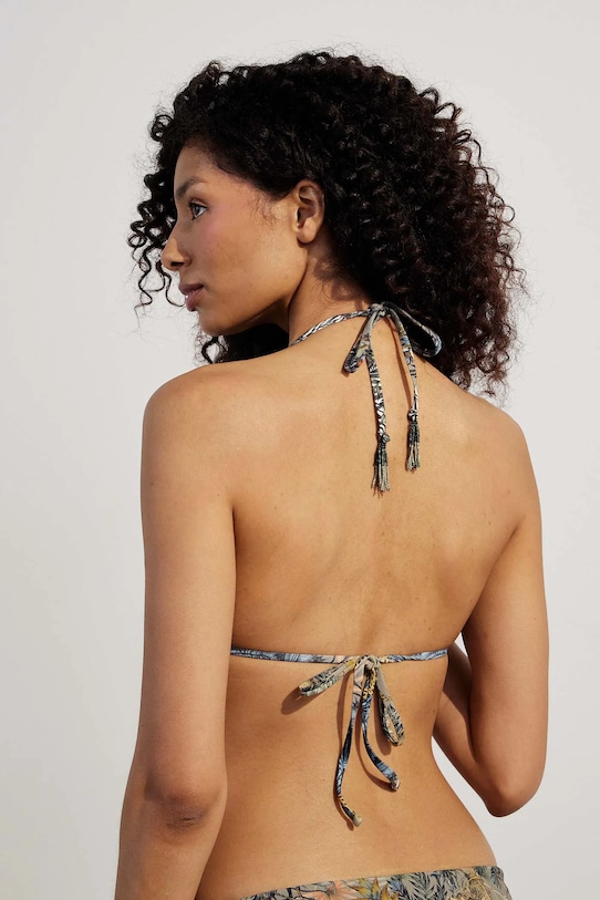 Раздельный купальник из коллекции Medicine. Изготовлен из ткани с узором. - В комплект входят трусики на завязках и бюстгальтер с чашечками на легкой подкладке. - Чашка со съемными вкладышами. - Классический треугольный топ со сборками для регулирования ширины чашечек. - Модель с регулируемой шнуровкой. - Галстук, украшенный бисером. - Низ с завязками по бокам позволяет индивидуально подогнать по фигуре. - Дополнительный слой материала в виде подкладки. - Узорчатый материал. - Узор с растительными и животными мотивами.