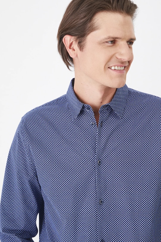 Эта рубашка из коллекции Medicine выполнена из ткани с мелким узором и имеет классический, слегка жесткий воротник. - Рубашка прямого кроя мягко облегает фигуру, но не подчеркивает ее, обеспечивая свободу движений. - Длинный рукав. - Манжеты на пуговицах. - Слегка усиленный классический воротник Kent. - Застежка на пуговицы. - Ткань с мелким рисунком. - Окружность воротника: 43,5 см. - Длина рукава: 68 см. - Длина: 78,1 см. - Ширина под мышками: 57 см. - Ширина плеч: 47 см. - Размеры указаны для размера: L.