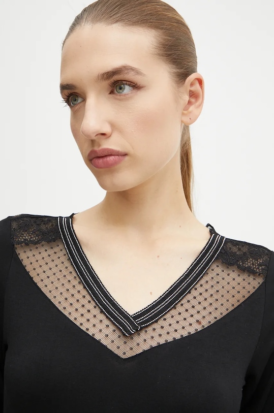 Эта блузка из коллекции Morgan выполнена из эластичного трикотажа. Модель выполнена из мягкого и приятного на ощупь материала. - Частично изготовлен из LENZING ECOVERO, экологически чистого материала. LENZING ECOVERO производится из органической целлюлозы и древесной массы, используя на 50% меньше воды, чем популярная вискоза. - Декоративный, заостренный вырез. - Застегивается на пуговицы сзади. - Приталенный крой. - Тонкий, эластичный трикотаж. - Длина: 58 см. - Ширина под мышками: 40 см. - Размеры указаны для размера: S.